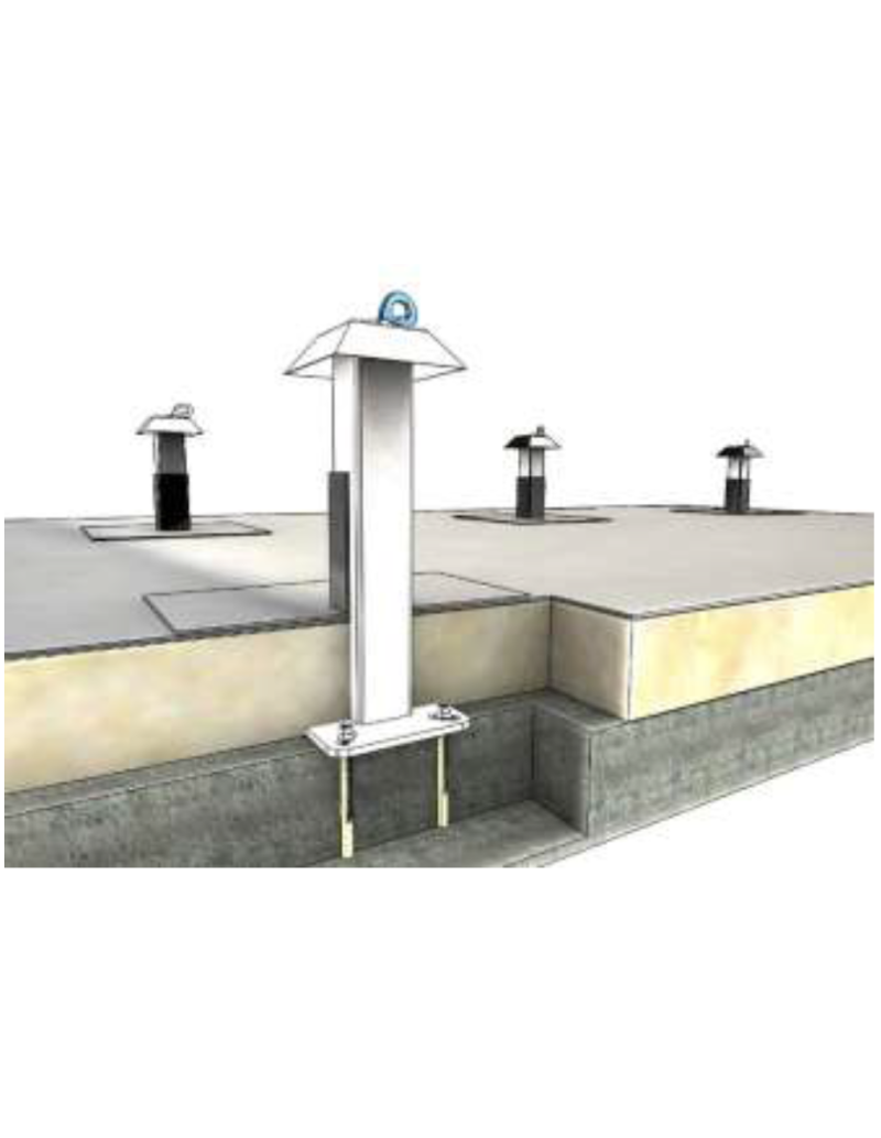 Les potelets SECUR permettent d’ancrer directement des dispositifs antichute sur la structure du bâtiment (dalle béton,charpente métallique, panne bois structurelle ou pannelamellé collé).